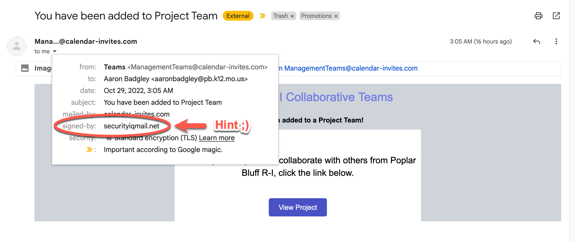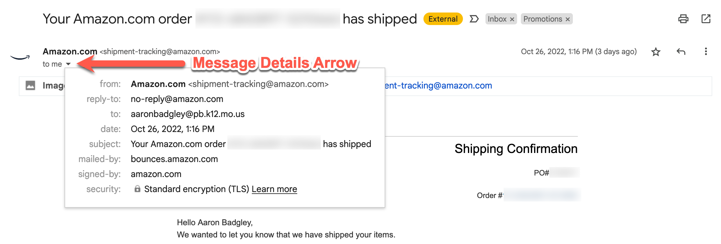 - Do you recognize the sender? Not just the name, but look at the message details - does the email address in the message details match the sender's name and organization?