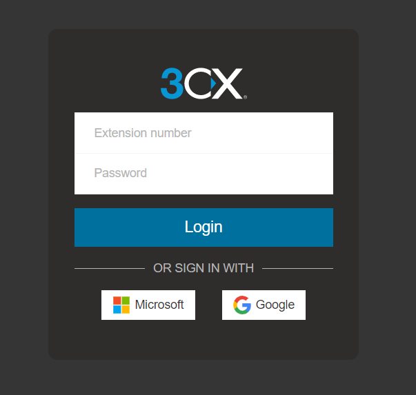 The 3CX Web Client login screen will give you the option to log in three different ways: